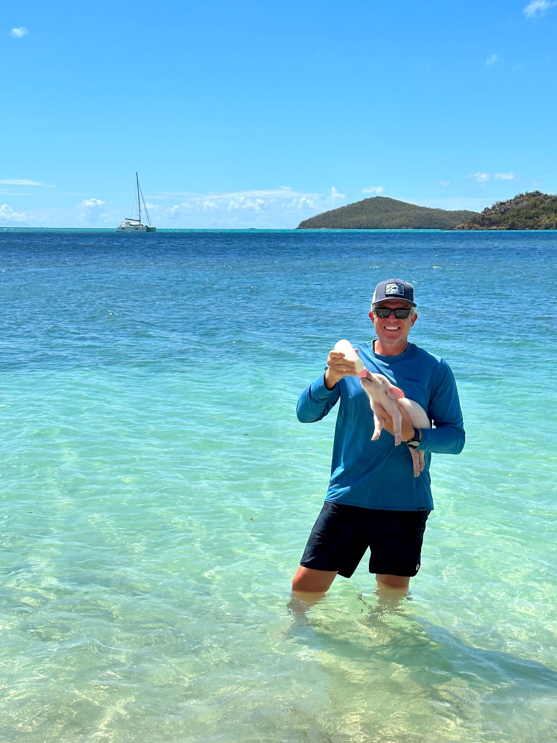 After a less-than-ideal sail to Antigua, we got to play with pigs and also had a visit from Larry who came along to Guadeloupe.